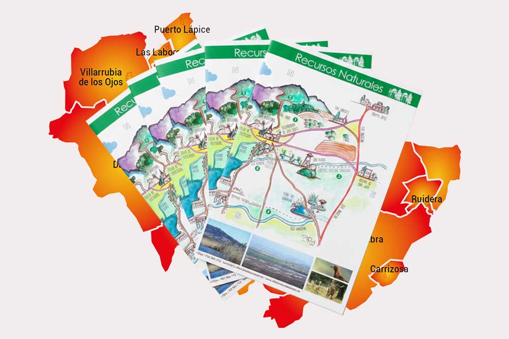 Este folleto reúne los recursos naturales de Villarrubia de los Ojos a través de un mapa ilustrado con rutas a pie y en bicicleta, espacios protegidos y paisajes ligados al río Cigüela y al entorno de Las Tablas de Daimiel. Incluye senderos como el Camino Natural del Guadiana o la subida al Santuario de la Virgen de la Sierra, junto a información sobre flora y fauna. Una guía pensada para orientarte y descubrir el territorio desde una mirada activa y sostenible.