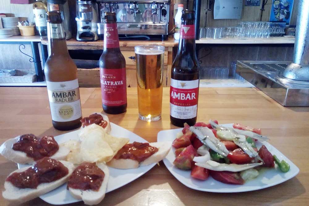 - Tapas generosas acompañando bebidas.
