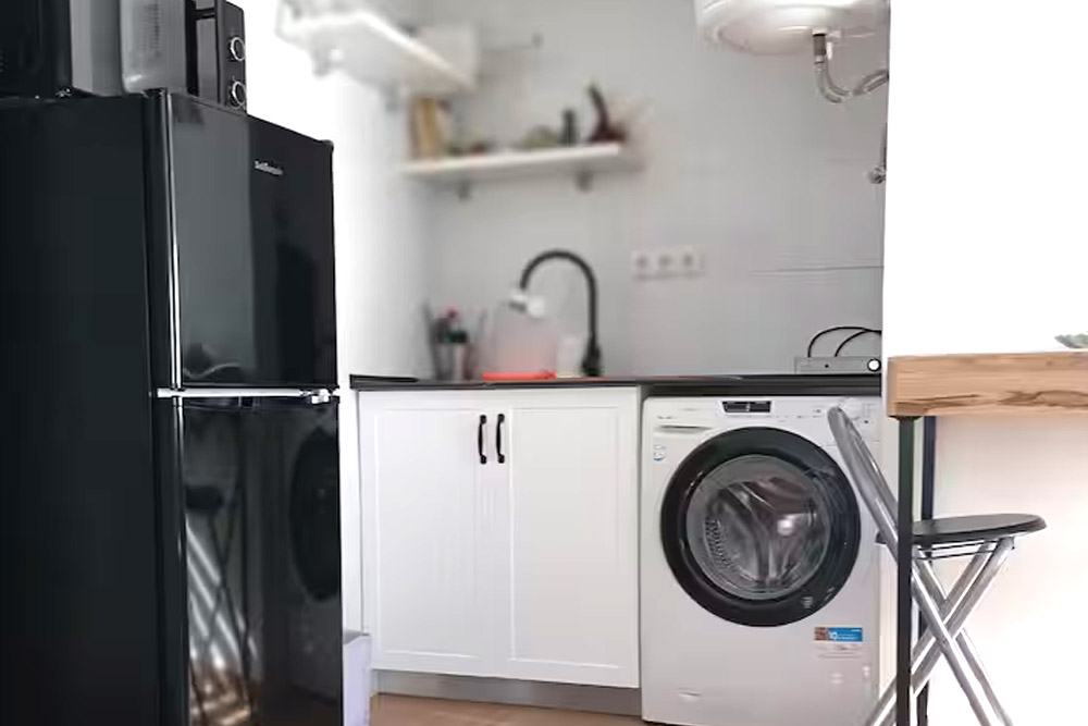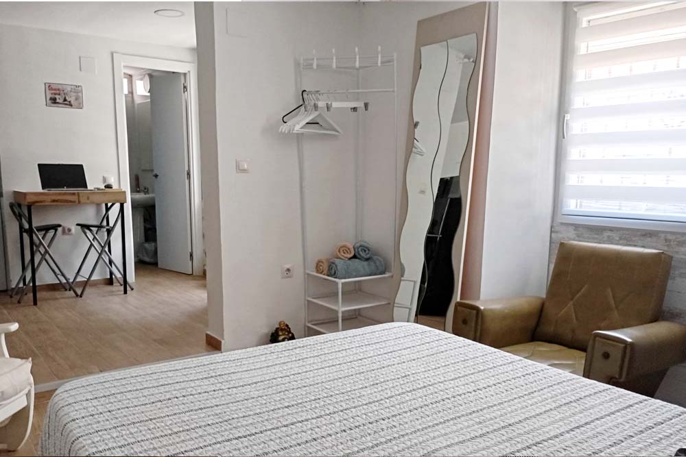La vivienda está distribuida en dos espacios abiertos: una amplia zona de cocina-salón con zona de comedor, un dormitorio con cama doble y baño independiente, además de un patio exterior común con zona privada para uso exclusivo de los huéspedes. La cocina está totalmente equipada y cuenta con cafetera de cápsulas, mientras que el baño dispone de plato de ducha, toallero eléctrico, secador y plancha de vapor.