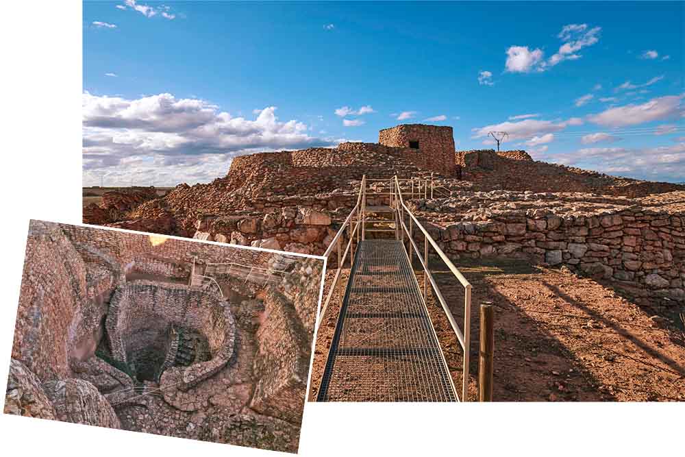 La Motilla del Azuer, en Daimiel, es uno de los yacimientos más representativos de la cultura del bronce manchego y un lugar clave para descubrir las primeras huellas de la civilización en esta comarca. Dispuesta en anillos concéntricos en torno a una gran torre central, con viviendas en su interior y exterior, actuaba como epicentro de un área agrícola, y contaba con un pozo para la obtención de agua. Es la estructura hidráulica más antigua documentada en la península Ibérica.