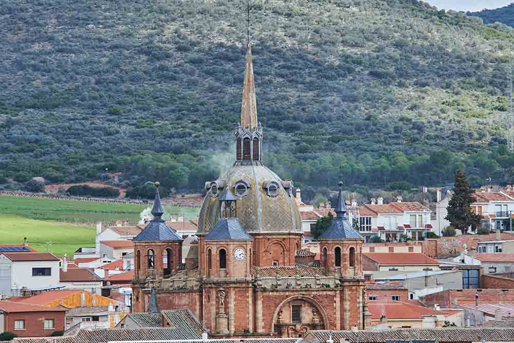 Esa afluencia de fieles y el peso creciente del santuario impulsaron la construcción del conjunto monumental que hoy define al municipio. La Corona y el Consejo de Órdenes Militares promovieron la edificación de la gran iglesia y de los edificios que conforman la actual Plaza Mayor, levantada entre 1750 y 1770, un espacio de planta rectangular con columnas de piedra y galerías de madera que parece salido de una postal. Su diseño es singular: en un lado se sitúa el antiguo Ayuntamiento, con balcón voladizo sobre ménsulas de madera; en otro, la Casa Grande de la Hospedería, con patio de carros y galerías interiores, mientras que los arcos de ladrillo abren paso a calles radiales, amplias y rectas. En 1993, el conjunto fue declarado Bien de Interés Cultural.